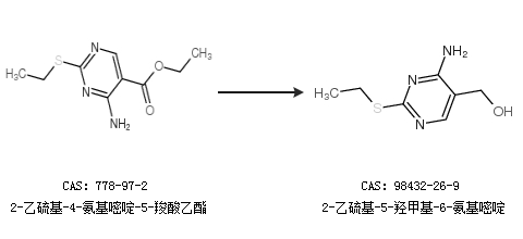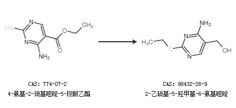 2.通過4-氨基-2-巰基嘧啶-5-羧酸乙酯合成2-乙硫基-5-羥甲基-6-氨基嘧啶