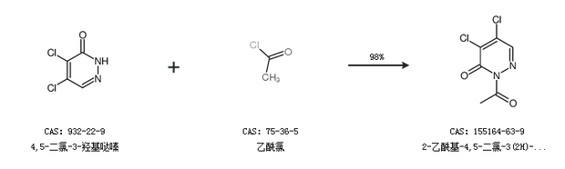 1.通過4,5-二氯-3-羥基噠嗪和乙酰氯合成2-乙?;?4,5-二氯-3(2H)-噠嗪,收率約98%;