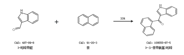 2.通過3-吲哚甲醛和萘合成3-(1-萘甲?;?吲哚,收率約33%;