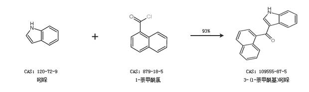 1.通過吲哚和1-萘甲酰氯合成3-(1-萘甲?;?吲哚,收率約93%;