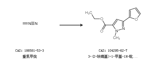 2.通過重氮甲烷合成3-(2-呋喃基)-1-甲基-1H-吡唑-5-羧酸乙酯