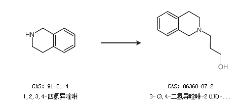 1.通過1,2,3,4-四氫異喹啉和3-溴-1-丙醇合成3-(3,4-二氫異喹啉-2(1H)-基)-1-丙醇
