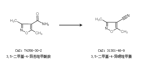 1.通過3,5-二甲基-4-異惡唑甲酰胺合成3,5-二甲基-4-異噁唑甲腈