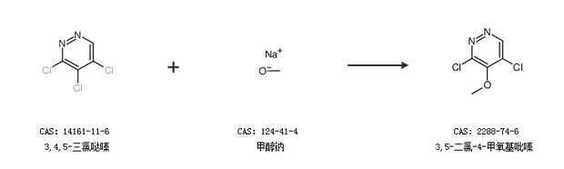 1.通過3,4,5-三氯噠嗪和甲醇鈉合成3,5-二氯-4-甲氧基吡嗪