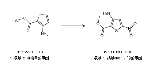 2.通過3-氨基-2-噻吩甲酸甲酯合成3-氨基-5-硝基噻吩-2-羧酸甲酯