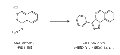 2.通過鹽酸肼屈嗪合成3-苯基-[1,2,4]噻唑并[3,4-a]二氮雜萘