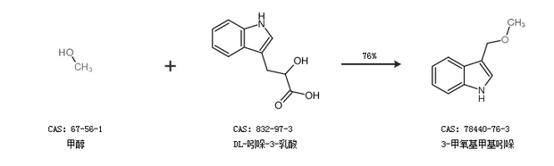 2.通過甲醇和DL-吲哚-3-乳酸合成3-甲氧基甲基吲哚,收率約76%;
