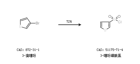 1.通過3-溴噻吩合成3-噻吩磺酰氯,收率約72%;