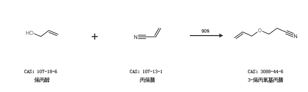 1.通過烯丙醇和丙烯腈合成3-烯丙氧基丙腈,收率約90%;