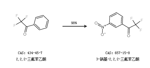 2.通過2,2,2-三氟苯乙酮合成3-硝基-2,2,2-三氟苯乙酮,收率約98%;