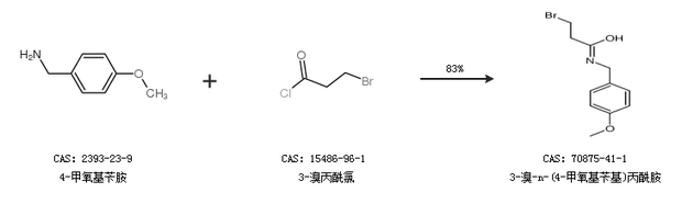 1.通過4-甲氧基芐胺和3-溴丙酰氯合成3-溴-n-(4-甲氧基芐基)丙酰胺,收率約83%;