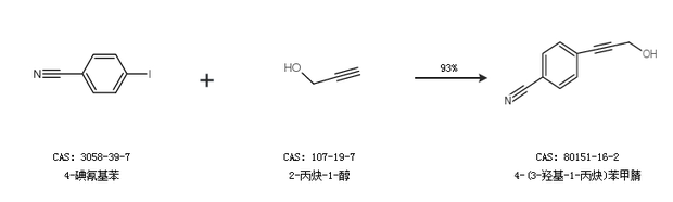2.通過4-碘氰基苯和2-丙炔-1-醇合成4-(3-羥基-1-丙炔)苯甲腈,收率約93%;