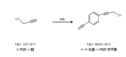1.通過2-丙炔-1-醇合成4-(3-羥基-1-丙炔)苯甲腈,收率約94%;