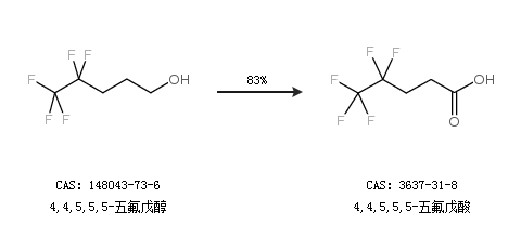 1.通過4,4,5,5,5-五氟戊醇合成4,4,5,5,5-五氟戊酸,收率約83%;