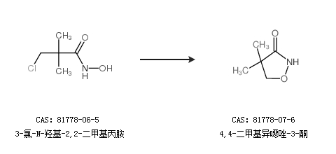 1.通過3-氯-N-羥基-2,2-二甲基丙胺合成4,4-二甲基異噁唑-3-酮