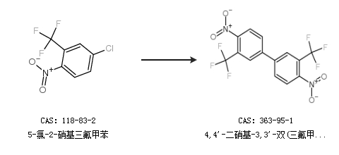 1.通過5-氯-2-硝基三氟甲苯合成4,4''-二硝基-3,3''-雙(三氟甲基)聯(lián)苯