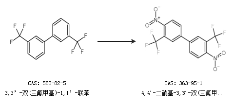 2.通過3,3’-雙(三氟甲基)-1,1’-聯(lián)苯合成4,4''-二硝基-3,3''-雙(三氟甲基)聯(lián)苯