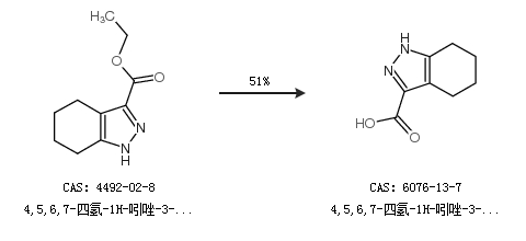 1.通過(guò)4,5,6,7-四氫-1H-吲唑-3-羧酸乙酯合成4,5,6,7-四氫-1H-吲唑-3-甲酸,收率約51%;