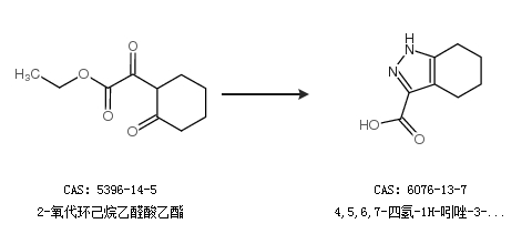 2.通過(guò)2-氧代環(huán)己烷乙醛酸乙酯合成4,5,6,7-四氫-1H-吲唑-3-甲酸