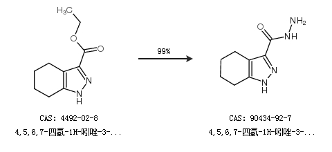1.通過4,5,6,7-四氫-1H-吲唑-3-羧酸乙酯合成4,5,6,7-四氫-1H-吲唑-3-羧肼,收率約99%;