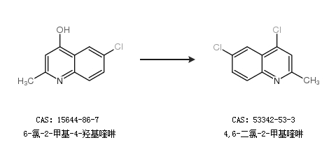 1.通過6-氯-2-甲基-4-羥基喹啉合成4,6-二氯-2-甲基喹啉