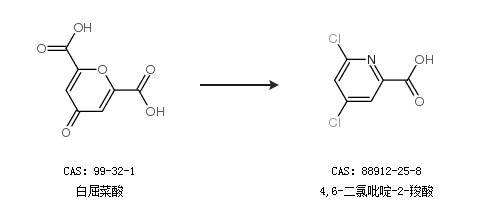 2.通過白屈菜酸合成4,6-二氯吡啶-2-羧酸