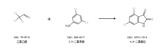 1.通過三氯乙醛和3,5-二氯苯胺合成4,6-二氯靛紅