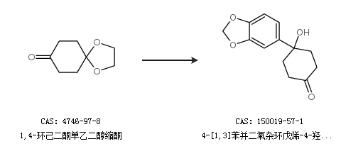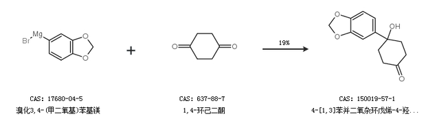 1.通過溴化3,4-(甲二氧基)苯基鎂和1,4-環(huán)己二酮合成4-[1,3]苯并二氧雜環(huán)戊烯-4-羥基-環(huán)己酮,收率約19%;