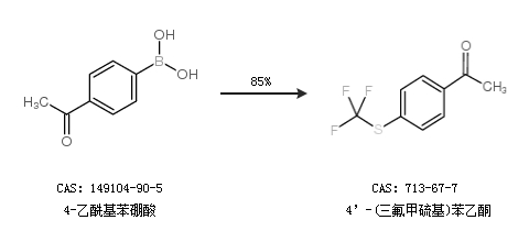 2.通過(guò)4-乙?;脚鹚岷铣?’-(三氟甲硫基)苯乙酮,收率約85%;