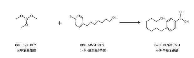 2.通過三甲氧基硼烷和1-(4-溴苯基)辛烷合成4-N-辛基苯硼酸