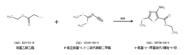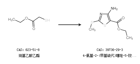 2.通過(guò)巰基乙酸乙酯合成4-氨基-2-(甲基硫代)噻唑-5-羧酸乙酯