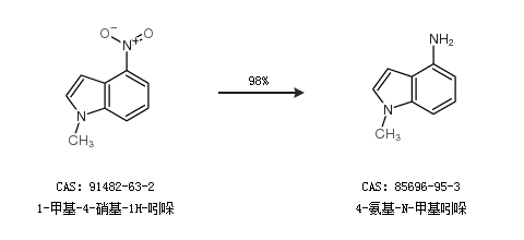 1.通過1-甲基-4-硝基-1H-吲哚合成4-氨基-N-甲基吲哚,收率約98%;