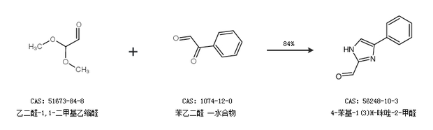 1.通過乙二醛-1,1-二甲基乙縮醛和苯乙二醛 一水合物合成4-苯基-1(3)H-咪唑-2-甲醛,收率約84%;