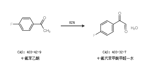 1.通過4-氟苯乙酮合成4-氟代苯甲酰甲醛一水,收率約82%;