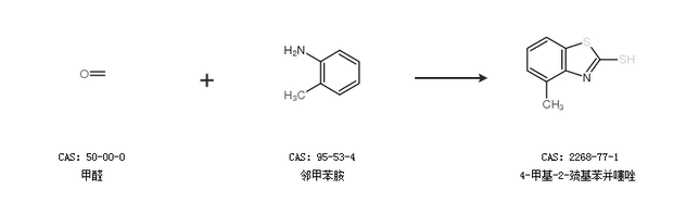 2.通過甲醛和鄰甲苯胺合成4-甲基-2-巰基苯并噻唑