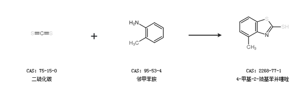 1.通過二硫化碳和鄰甲苯胺合成4-甲基-2-巰基苯并噻唑