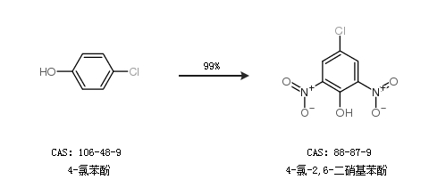 1.通過4-氯苯酚合成4-氯-2,6-二硝基苯酚,收率約99%;