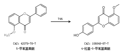 1.通過5-甲氧基黃酮合成4-羥基-5-甲氧基黃酮,收率約74%;