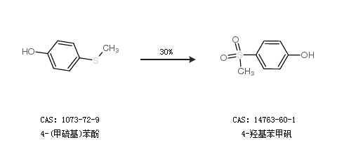 2.通過4-(甲硫基)苯酚合成4-羥基苯甲砜,收率約30%;