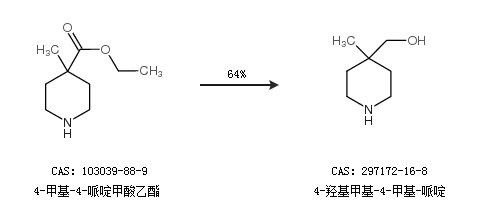 1.通過4-甲基-4-哌啶甲酸乙酯合成4-羥基甲基-4-甲基-哌啶,收率約64%;