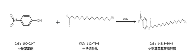1.通過4-硝基苯酚和硬脂酸合成4-硝基苯基硬脂酸酯,收率約83%;