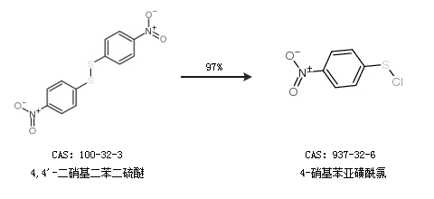 1.通過4,4''-二硝基二苯二硫醚合成4-硝基苯亞磺酰氯,收率約97%;