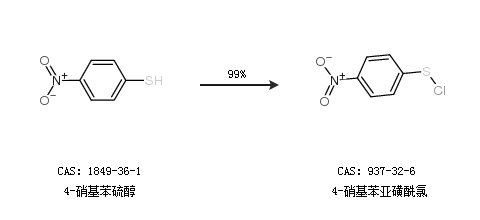 2.通過4-硝基苯硫醇合成4-硝基苯亞磺酰氯,收率約99%;