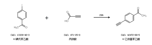2.通過4-碘代苯乙酮和丙炔酸合成4-乙炔基苯乙酮,收率約29%;