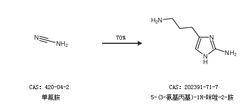 1.通過單氰胺合成5-(3-氨基丙基)-1H-咪唑-2-胺,收率約70%;