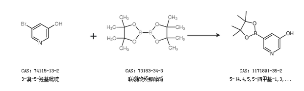1.通過3-溴-5-羥基吡啶和聯(lián)硼酸頻那醇酯合成5-(4,4,5,5-四甲基-1,3,2-二噁硼烷-2-基)吡啶-3-醇
