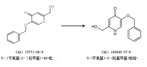 1.通過(guò)5-(芐氧基-2-(羥甲基)-4H-吡喃-4-酮合成5-(芐氧基)-2-(羥基甲基)吡啶-4-醇