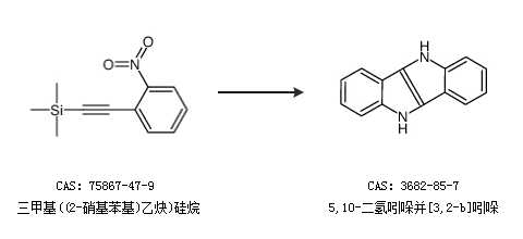 1.通過(guò)三甲基((2-硝基苯基)乙炔)硅烷合成5,10-二氫吲哚并[3,2-b]吲哚