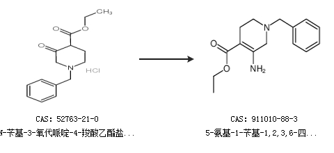 2.通過(guò)N-芐基-3-氧代哌啶-4-羧酸乙酯鹽酸鹽合成5-氨基-1-芐基-1,2,3,6-四氫-吡啶-4-羧酸乙酯