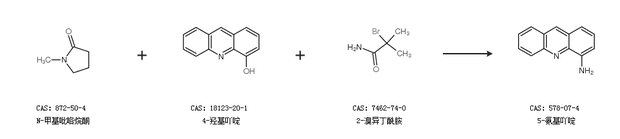 2.通過N-甲基吡咯烷酮、4-羥基吖啶和2-溴異丁酰胺合成5-氨基吖啶